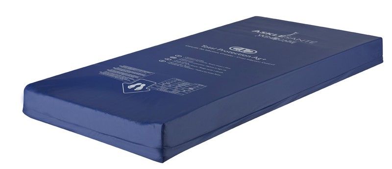Alova viskoelastische Matratze mit Fersenentlastung. Monoblock-Anti-Dekubitus-Matratze aus 100 % PU-Schaum mit einer Dichte von 80 kg/m³ für Benutzer bis 120 kg. Doppelt geformte Schaumstoffbasis mit abnehmbarem Bezug. Alova statische Matratze zur Vorbeugung und Behandlung von Dekubitus. Der leichtelastische viskoelastische Schaum von Alova verfügt über drei verschiedene Stützkräfte, die den Körperdruck auf die Unterlage reduzieren. Eine Neigung der Oberfläche der Alova-Matratze im Kontakt mit den unteren Gliedmaßen sorgt für eine Fersenentlastung. Die Kombination dieser Prinzipien verbessert die Durchblutung und minimiert den Druck in dekubitusgefährdeten Bereichen. Die Alova viskoelastische Matratze mit Fersenentlastung ist besonders geeignet für Benutzer, die lange liegen, in ihrer Mobilität eingeschränkt sind und ein mittleres bis hohes Dekubitusrisiko haben (gemäß der Braden-Skala oder einer anderen validierten Skala und gemäß ärztlicher Verordnung). Hilft bei der Behandlung von Dekubitus der Stadien I bis 2 gemäß EPUAP (Emergency Medicine Program). 6 cm dicke Matratzenauflage aus viskoelastischem Schaumstoff mit einem Gewicht von ≥ 75 kg/m³. 8 cm dicke Basis aus HR-Schaumstoff (High Resilience).