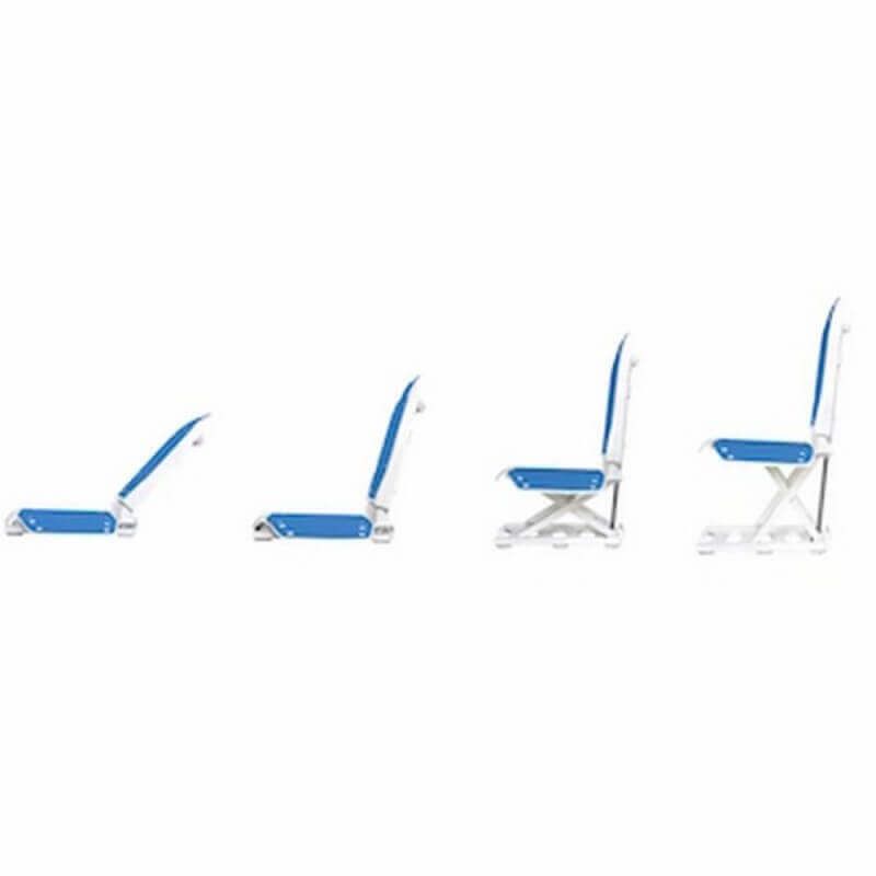 Die Sitzfläche ist 40 cm breit, 50 cm tief und von 8 bis 48 cm höhenverstellbar. Dadurch lässt sie sich optimal an den Benutzer anpassen und gewährleistet maximale Sicherheit.