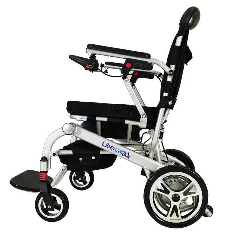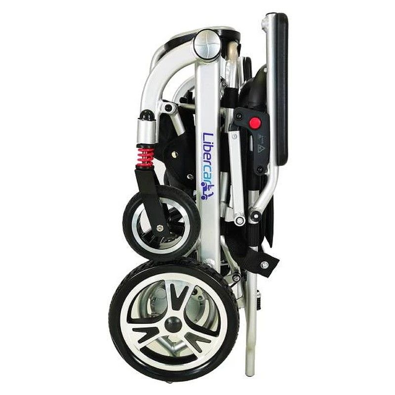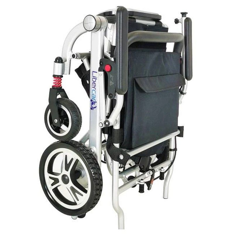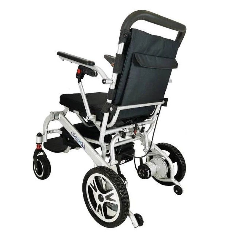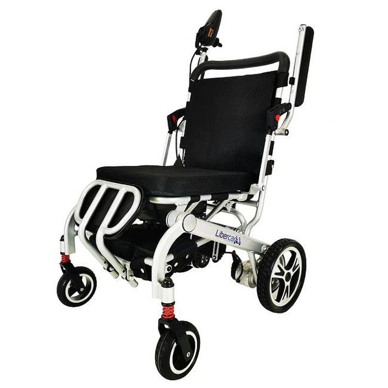Elektrorollstuhl mit Aluminiumrahmen und Lithiumbatterie (6 Ah/10 Ah/20 Ah) für ultraleichtes Gewicht (Rahmen 18,9 kg, Batteriegewicht: 1,5–1,8–2,2 kg je nach Batterie), hohe Leistung (Geschwindigkeit 6 km/h, Reichweite 10–14–26 km je nach Batterie) und maximalen Komfort dank bürstenloser Motoren, doppelter Vorder- und Hinterradfederung, schweißhemmender Rückenlehne, Memory-Schaum-Sitz und pannensicheren Rädern mit Alufelgen.