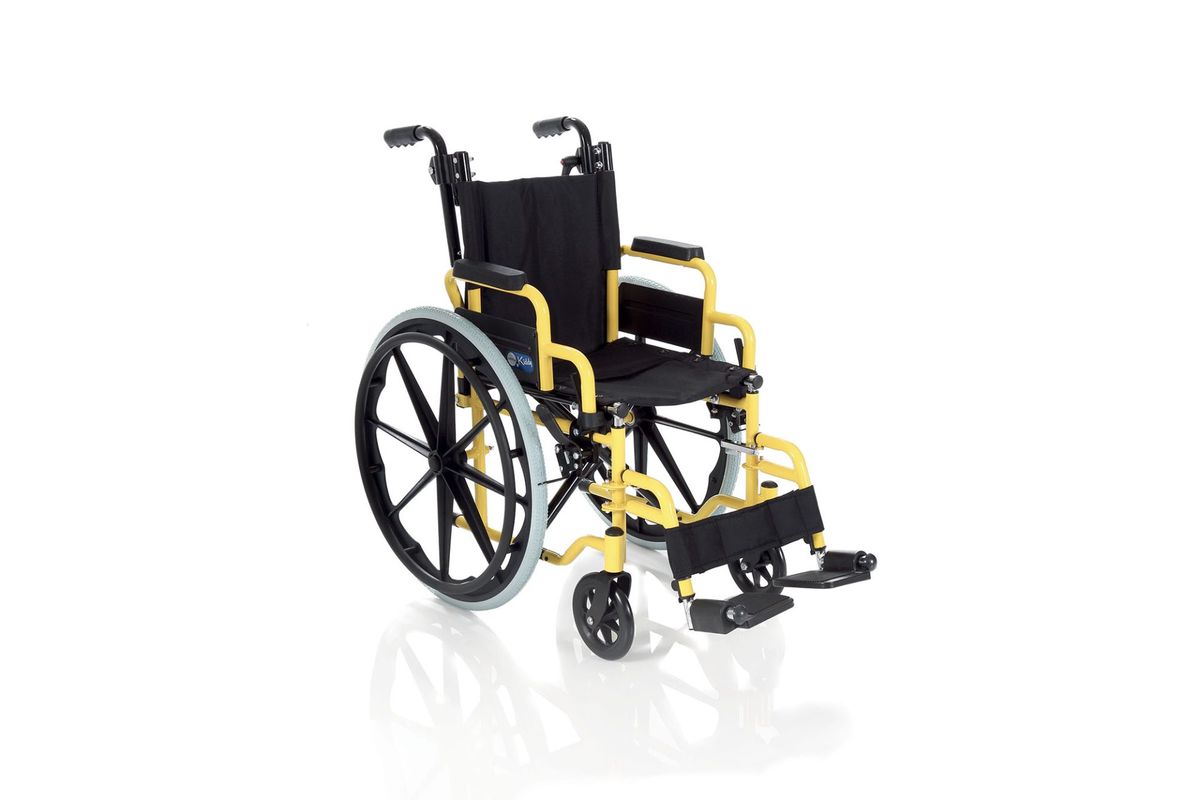 Speziell für Kinder konzipiert, sowohl hinsichtlich der Größe als auch des einfachen Zugangs, sodass Kinder selbstständig oder mit Hilfe von jemandem schnell und einfach in den Rollstuhl steigen können. Er verfügt über kurze, herunterklappbare Armlehnen (Tischmodell), abnehmbare Fußstützen und Beinstützen.