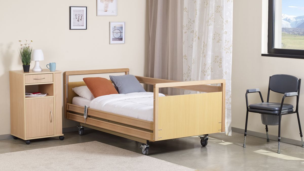 Das klassische Pflegebett für zu Hause und aufgrund seiner Langlebigkeit, robusten Konstruktion und hohen Leistung in vielen Einrichtungen beliebt. Es verfügt über einen 90 x 200 cm großen Lattenrost, eine Höhenverstellung von 34 bis 66 cm und vier vollelektronische Höhenverstellungsstufen für maximalen Komfort.