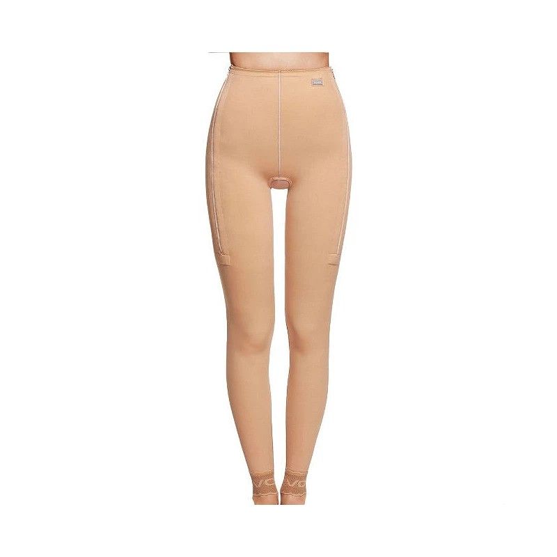 Post-Liposuktionsmieder mit Reißverschluss von den Knöcheln bis zur Taille, besonders geeignet für die postoperative Fettabsaugung von Reiterhosen und vollen Beinen sowie für Oberschenkelstraffungen. Öffnung und Schließung erfolgen über seitliche Reißverschlüsse mit einer inneren Lasche zum Schutz der Haut. Der Urogenitalbereich ist offen. Erhältlich in verschiedenen Größen und Farben.