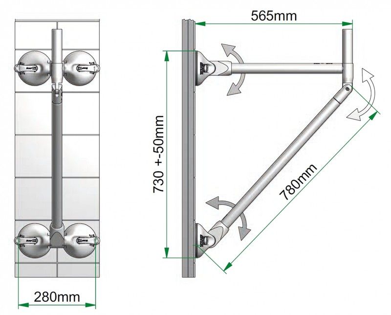 Geeignet für alle glatten, nicht porösen Oberflächen. Das QuattroPower-Haltesystem mit vier Saugnäpfen ist speziell entwickelt und reduziert Zug- und Scherkräfte. Es kann sogar an gefliesten und Hohlwänden montiert werden. Der QuattroPower ist vielseitig einsetzbar. Da das System vollständig zerlegbar ist, kann der QuattroPower auch als ein langer Wandgriff oder zwei kleinere Wandgriffe verwendet werden.